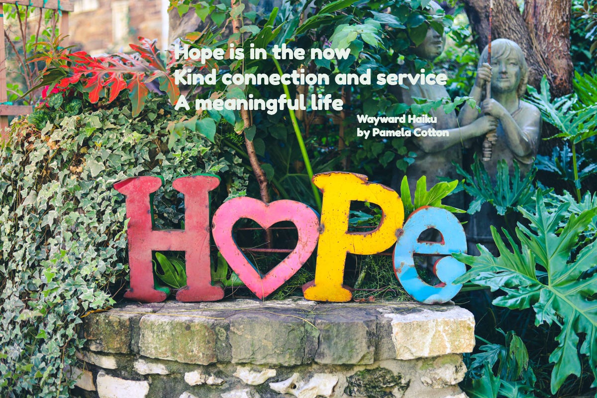 I would like to define hope differently, a definition that is grounded in present experience, not on what might or might not happen in the future. What happens if we define hope this way: “the feeling of connectedness and meaning when we focus on how we can help others, taking action based on that focus?” This keeps us in the present moment, and it also keeps us in a position of power. We can always choose this approach no matter what someone else does or whether those in power allow our expectations to be met.